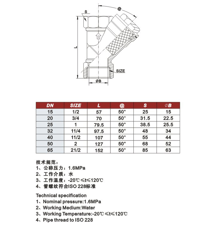 黃銅過濾器,GL11H黃銅過濾器參數尺寸圖:
