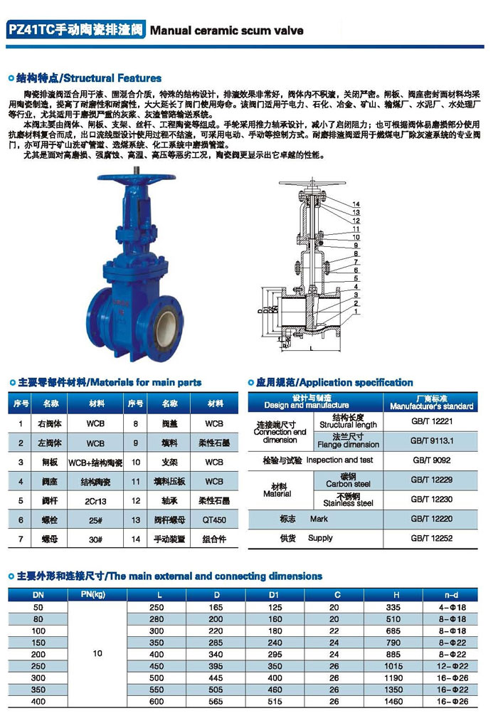 陶瓷排渣閥,PZ41TC手動陶瓷排渣閥產品介紹:
