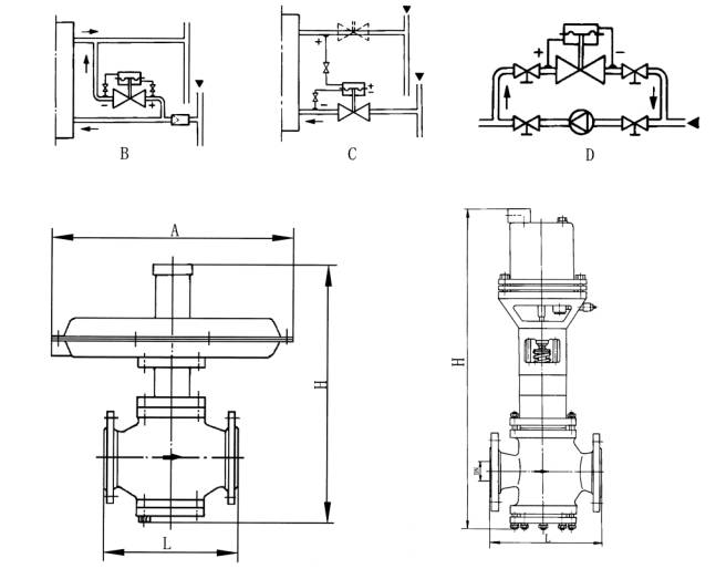 ·閥體為四通形式,因而K、B型可通用一種閥體。