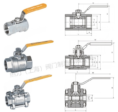 內螺紋連接球閥及對焊連接球閥分為整體式(一片式)、兩段式及三段式。閥體鑄造采用臺灣引進的先進工藝,結構合理、造型美觀。閥座采用彈性密封結構,密封可靠,啟閉輕松。閥桿采用有倒密封的下裝式結構,閥腔異常升壓時,閥桿不會被沖出。二片式、三片式球閥連接形式另有對焊(BW)承插焊(SW),并均可帶國際標準ISO支架平臺和鎖定裝置。可設置90°開關定位機構,根據需要加鎖以防止誤操作,驅動方式:手動、電動、氣動。
