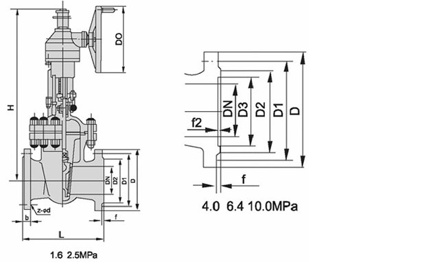 傘齒輪閘閥尺寸圖: