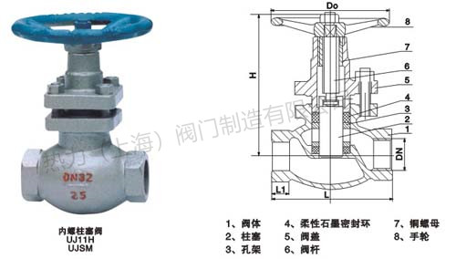 U11SM - UJl1H柱塞閥是由閥體、閥蓋、閥桿、柱塞、手輪等部件組成。當旋轉手輪時,通過閥桿帶動柱塞,使之在兩個密封圈之間上下往復運動,完成同時閥門的開啟和關閉。絲口柱塞閥由于密封圈采用新型非常等和金屬材料制成(PTFE),具有經受長期高溫、高壓而不喪失彈性的最主要性能,絲口柱塞閥而且柱塞與密封圈之間的接觸面積大,再者,密封圈系混合材料性能好,因此,密封可靠,經久耐用。